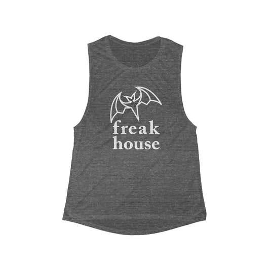 Freak House Signature Bat Logo Women's Flowy Scoop Muscle Tank, Poly Blend