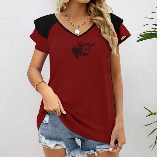 Won't You Be A Doll? Cooling Ice Silk Ruffle V-Neck T-Shirt