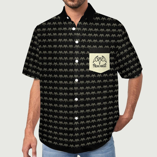 Freak House Faux Linen Short Sleeve Shirt with Pocket
