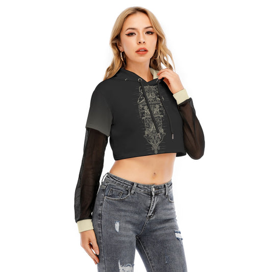 CoffHim Women's Fake Two-piece Mesh Sleeve Cropped Hoodie