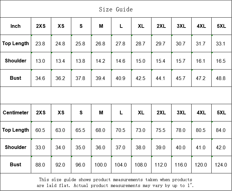 | Centimeter | 2XS | XS | S | M | L | XL | 2XL | 3XL | 4XL | 5XL |
