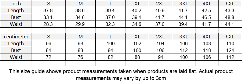 | centimeter | S | M | L | XL | 2XL | 3XL | 4XL | 5XL |